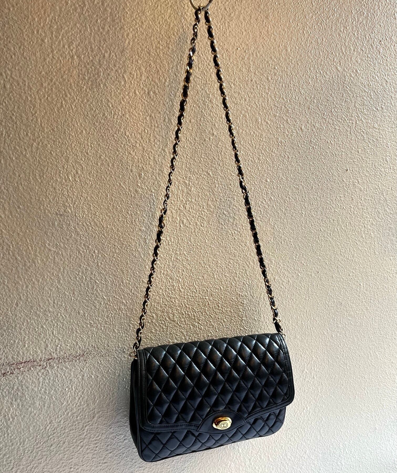 ブラックレザーにチェーンストラップが映えるItaly VintageショルダーBag!