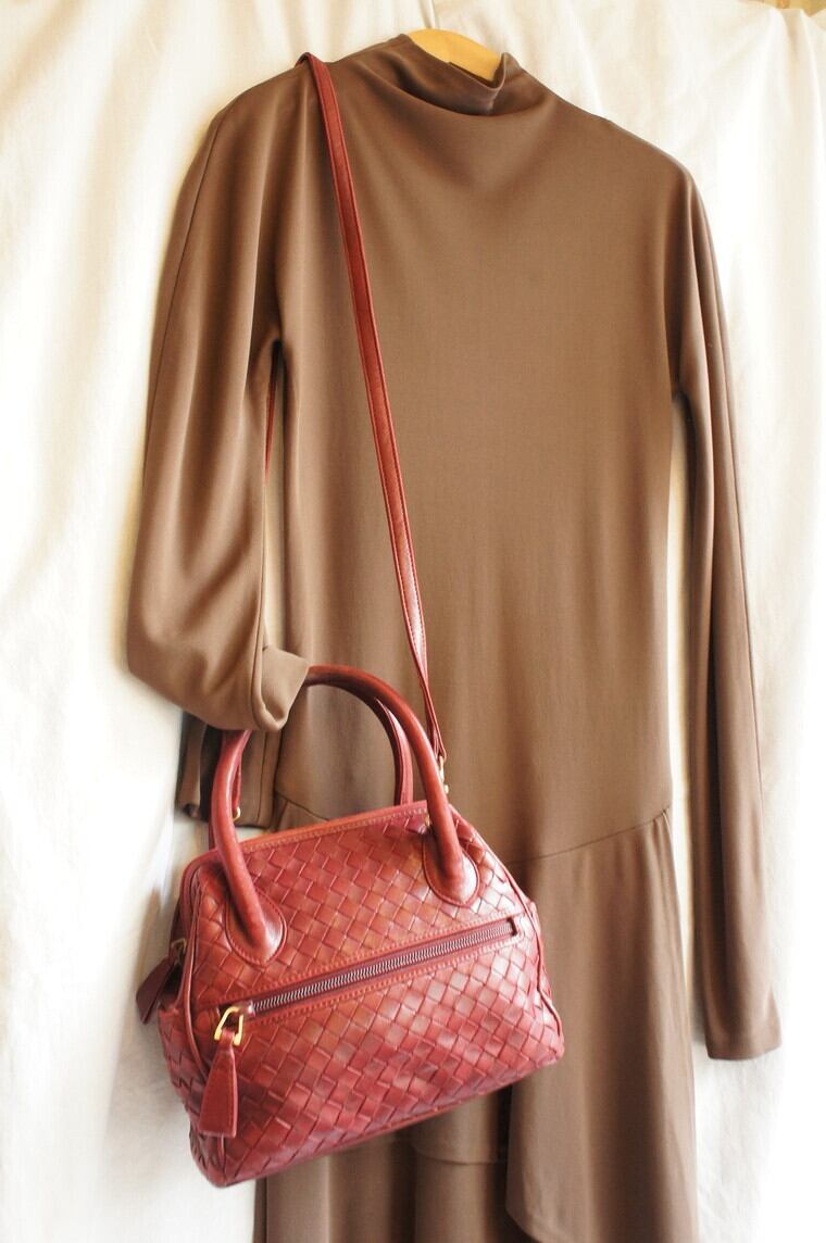 CASSANDRE "Knitting Leather" 2-Way Bag -Bordeaux-