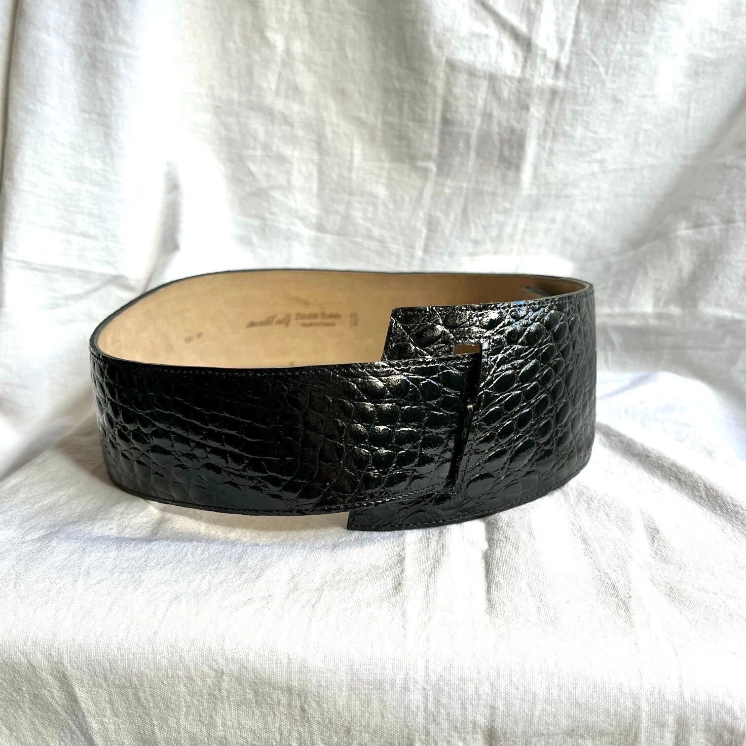 クロコダイルレザーの動きのあるデザインが芸術的なFrance Vintage太ベルト!