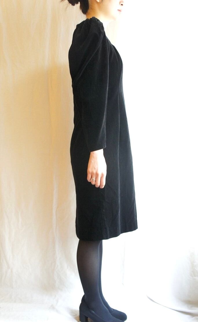 French 1970~1980's "Black Velour" Puff-Sleeve Dress