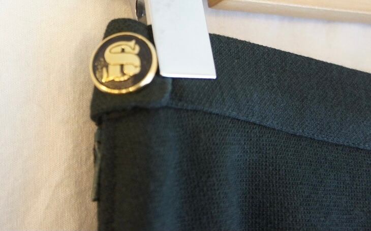 深いグリーンカラーにウエストのメタルボタンが映えるデザイン☆