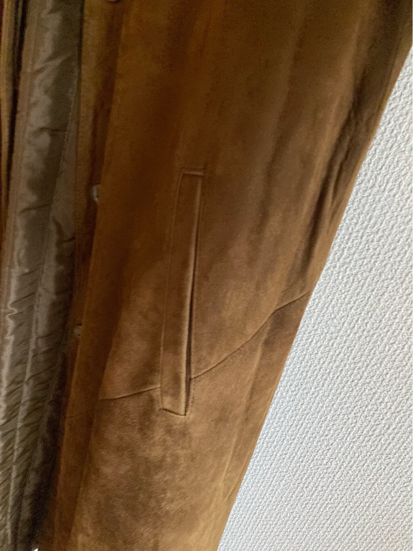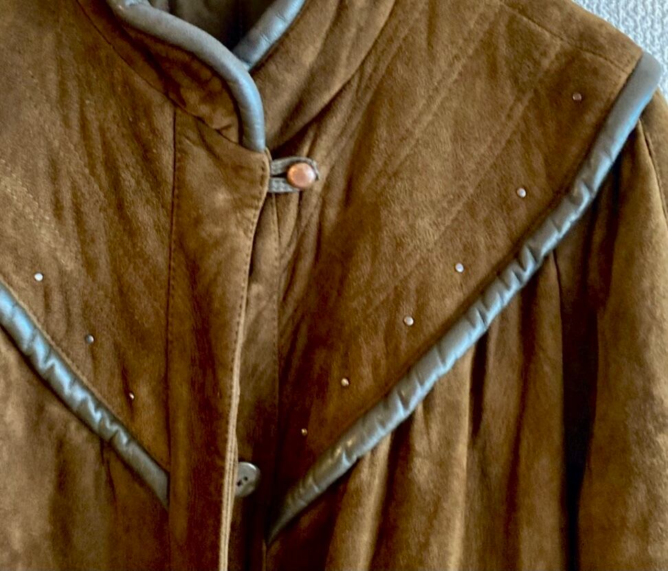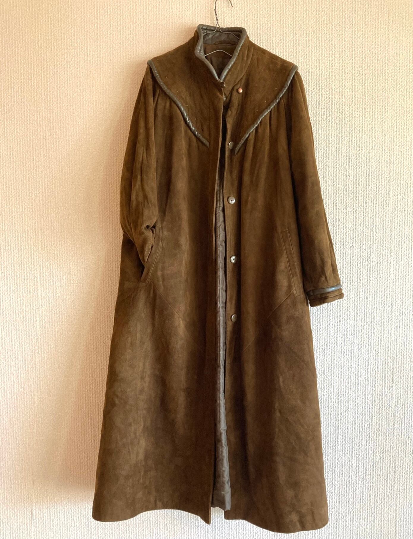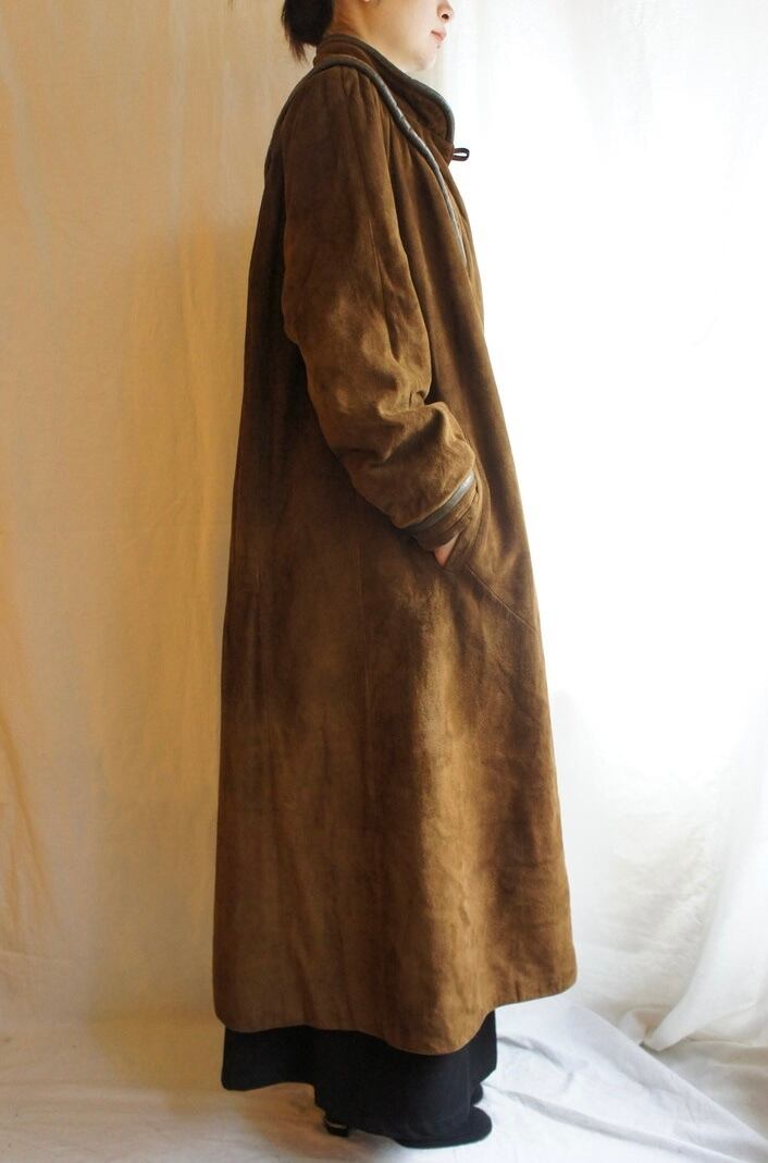 France "Dark Brown Suede × Leather Piping" Long Coat