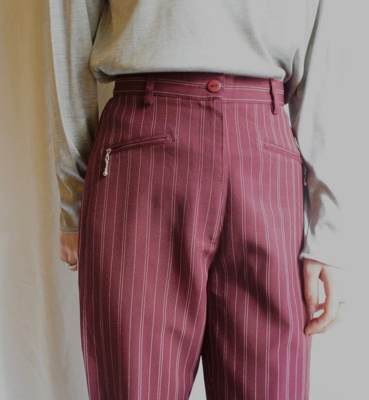 深いボルドー時に白いドットストライプがアクセントに効いたFrench Vintageパンツ!