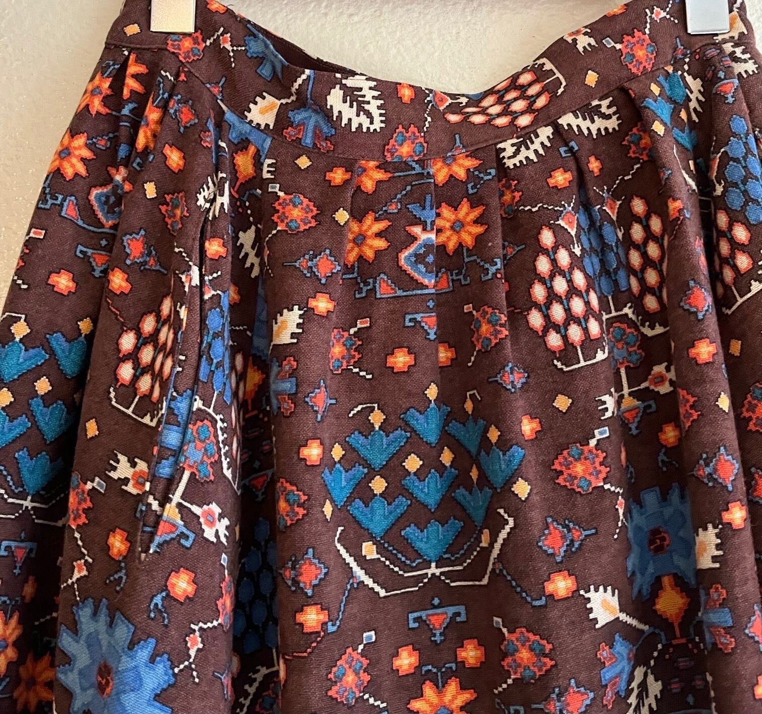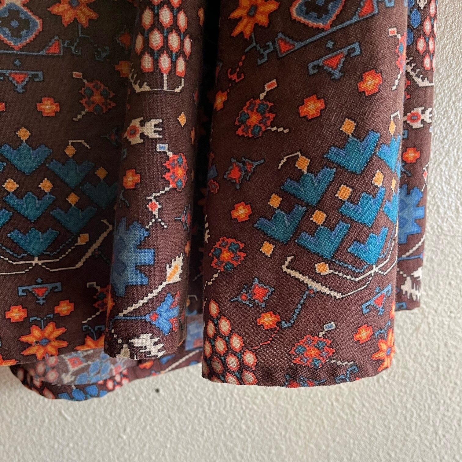 ブラウン時にブルーやオレンジのネイティブ柄が鮮やかなCHRISTIAN AUJARDのロングスカート!