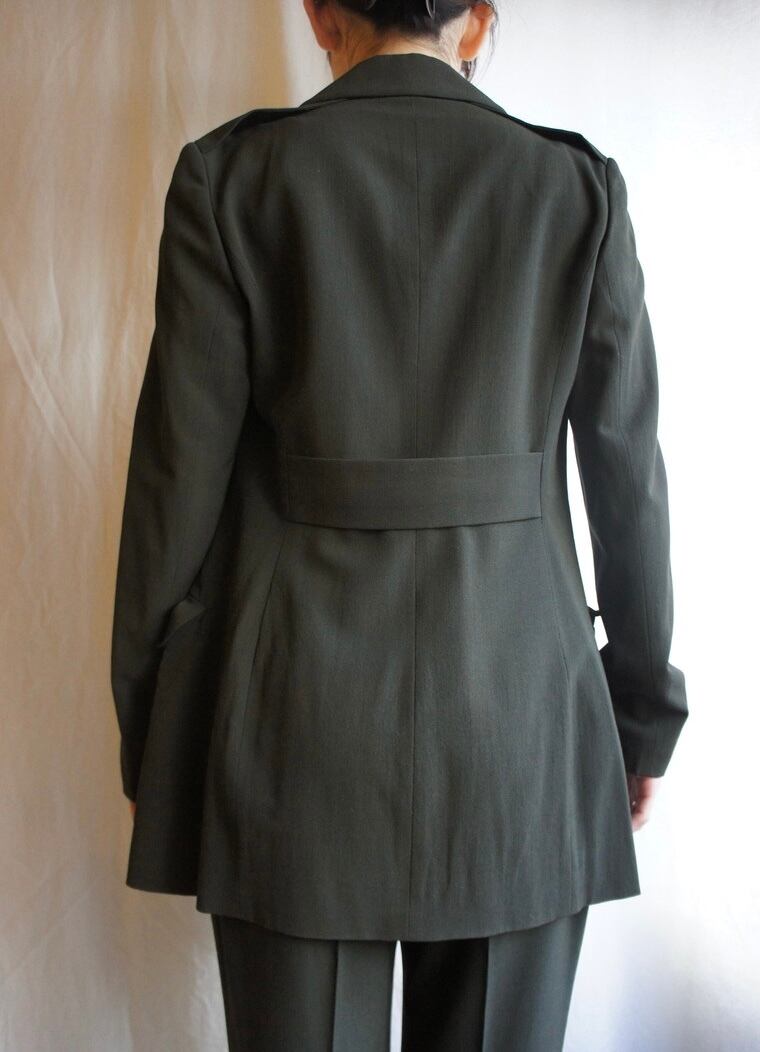 ロング丈のジャケットは後のベルトや肩のエポレットなど、ミリタリー感のあるテイストもありながら、体に沿ったシェイプが女性らしい洗練された形☆