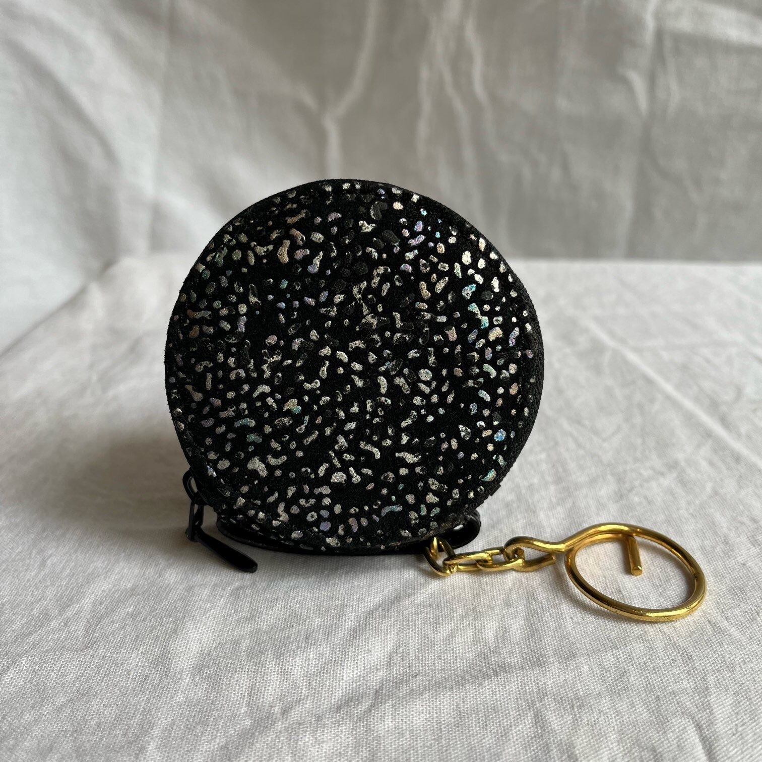 ブラックのスエード地にシルバーホイルがキラッと輝くデザイン☆