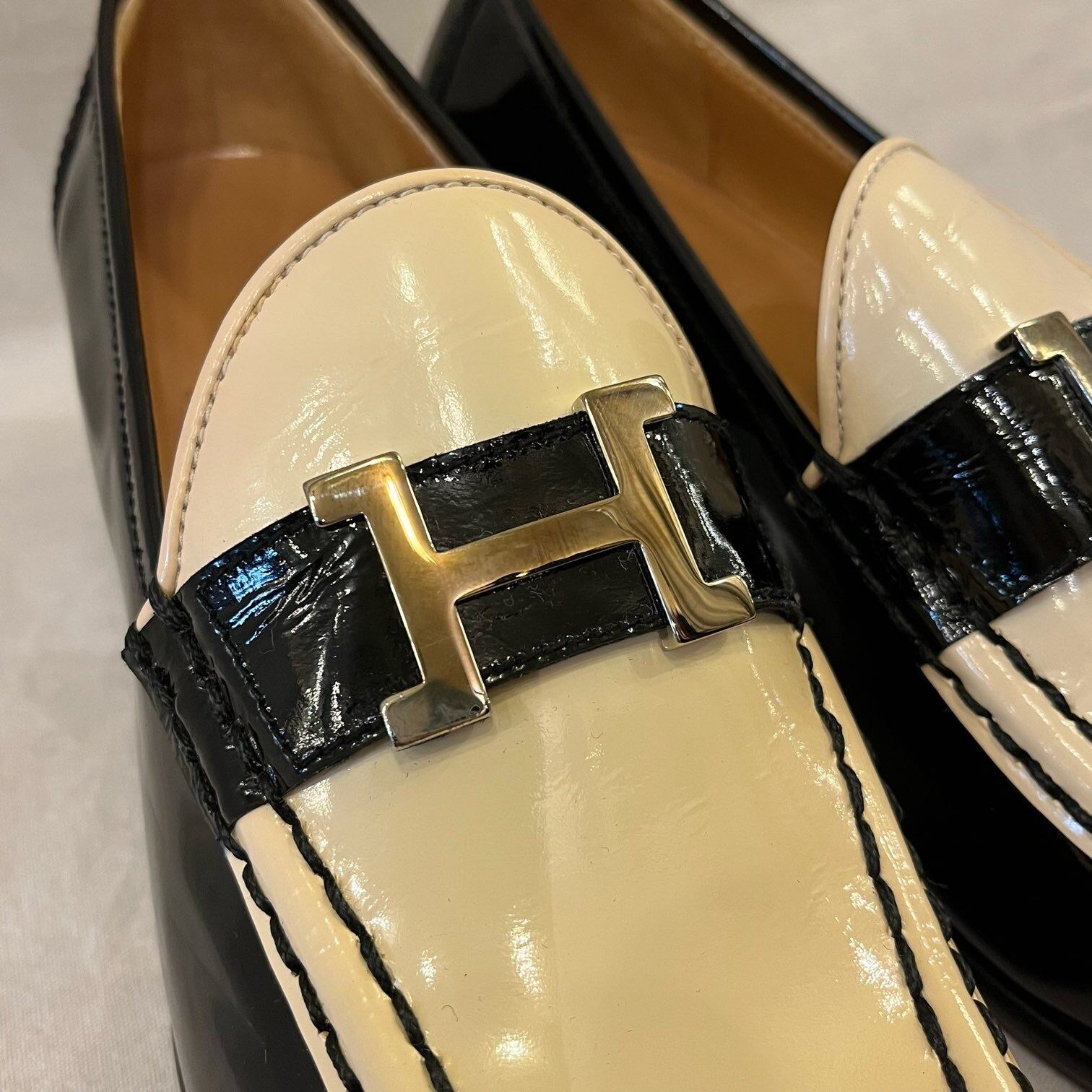 ブラック×アイボリーのバイカラーがモードなHERMES H金具ヒールローファー!