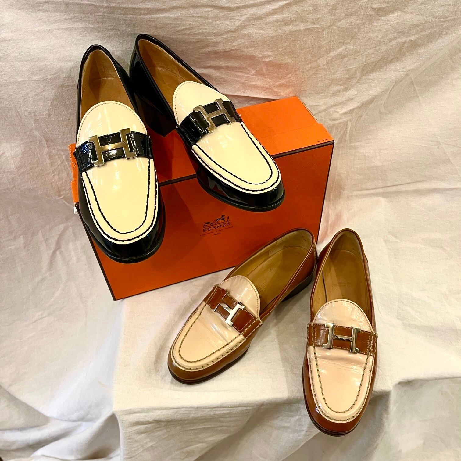 ベージュ×ブラウンのバイカラーが柔らかい印象のHERMES H金具ローファー!