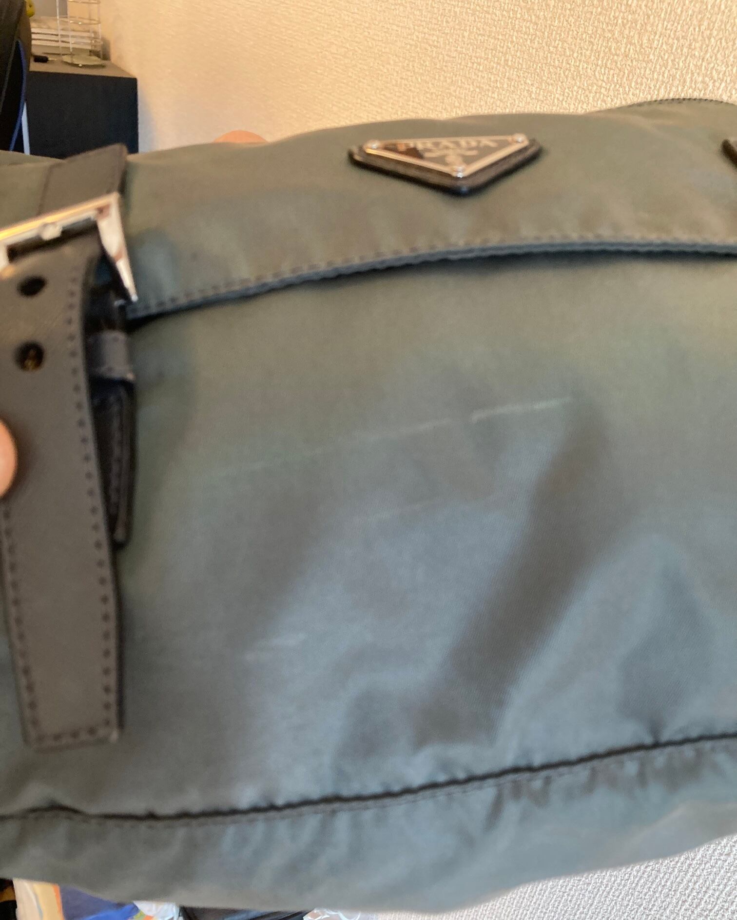 スモーキーなLight Khakiカラーが絶妙な色味のPRADAナイロンショルダー!