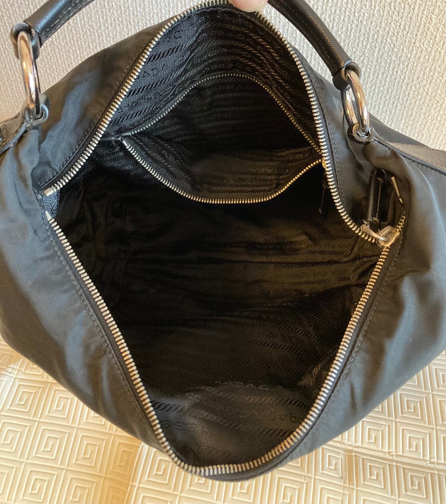 ブラックのナイロン地にレザーハンドルがスタイリッシュなPRADAのハンドBag!