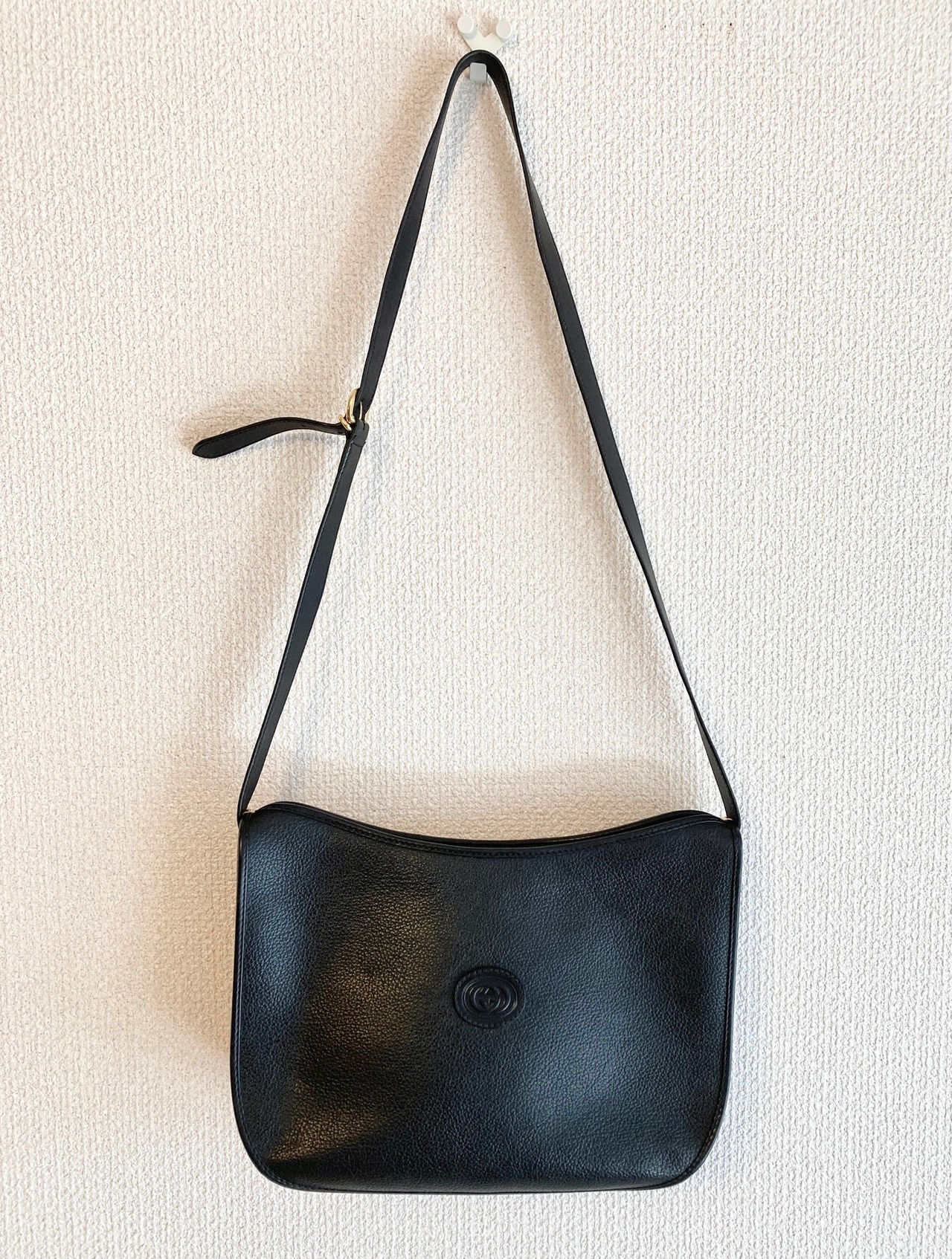 凹凸のあるレザーにGGロゴがさりげなく施されたGUCCI Vintageショルダー!