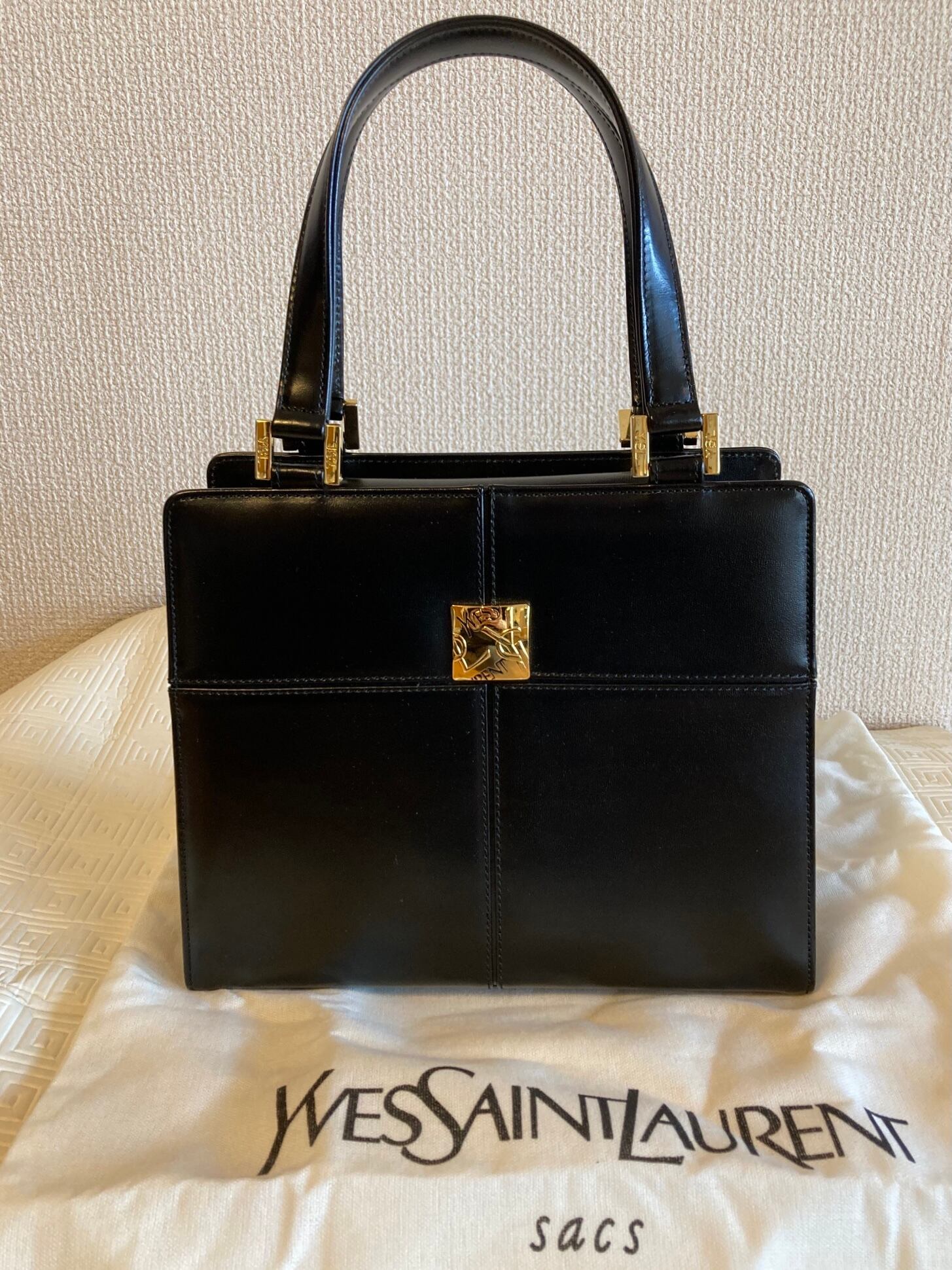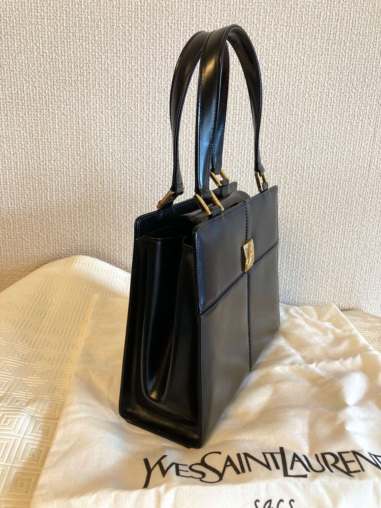 YSL "Square Shape" "Black Leather" Hand Bag -Dead Stock!-