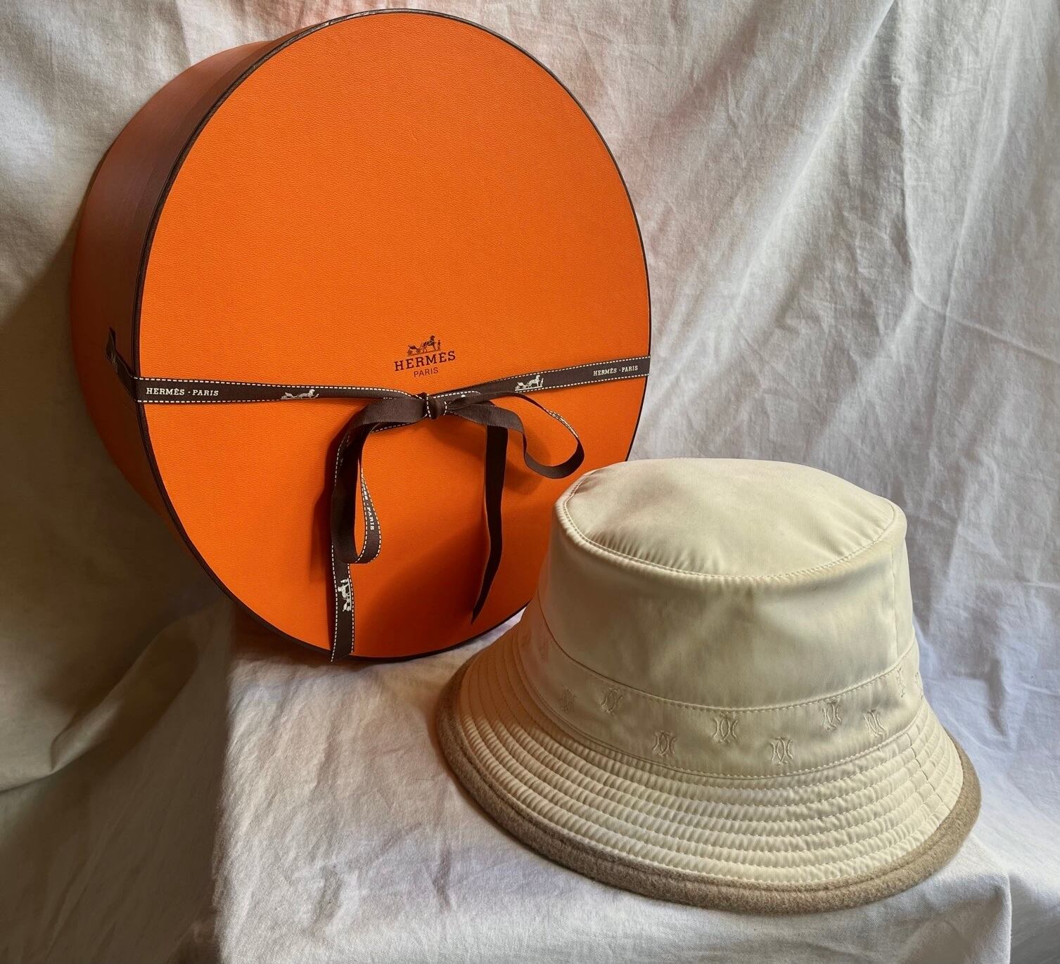 柔らかいアイボリーの色味が上品なHERMESのバケットハット、箱付き☆☆