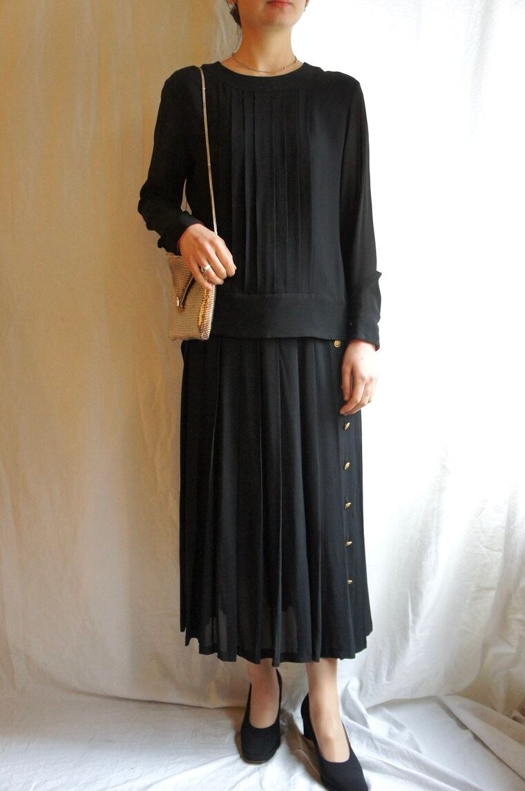 CHANEL "Black×Red" Silk "Blouce & Pleats Skirt" Set-Up