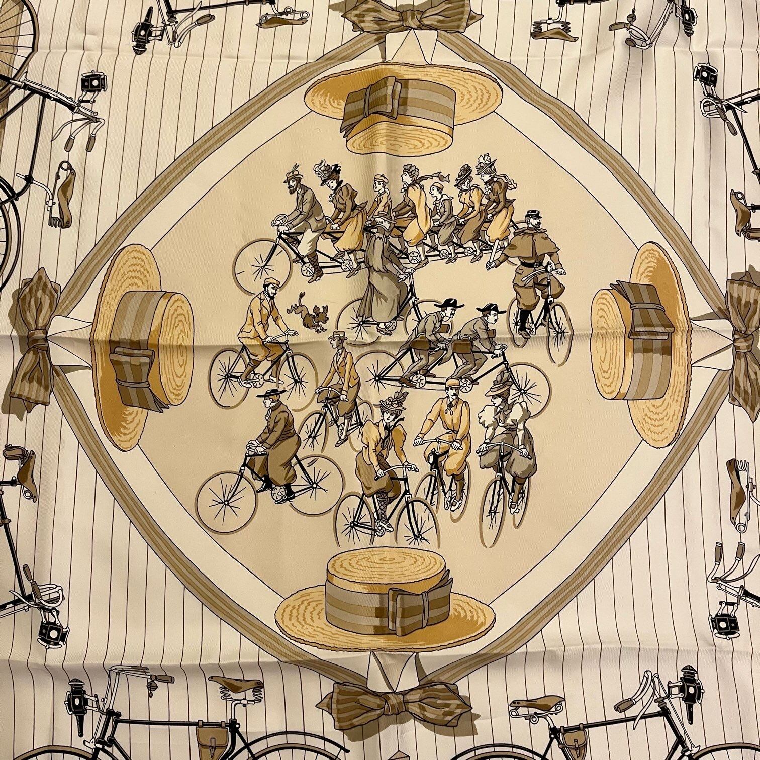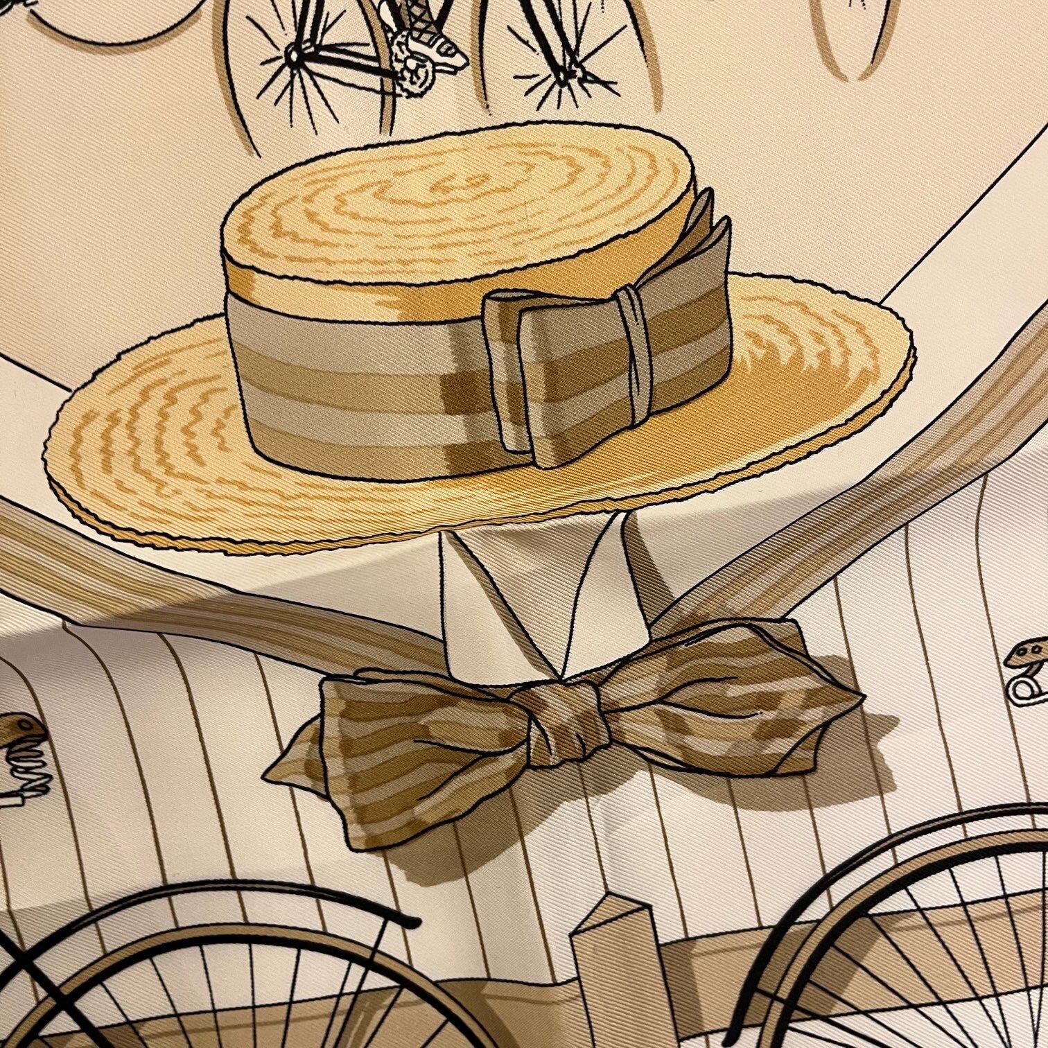 自転車にカンカン帽の絵柄がクラシックなHERMESのスカーフ!