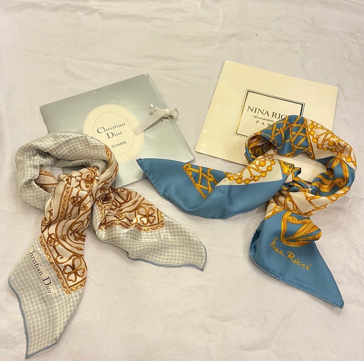 Light Blueの千鳥柄に透け感のある生地が上品なDIORのスカーフ!