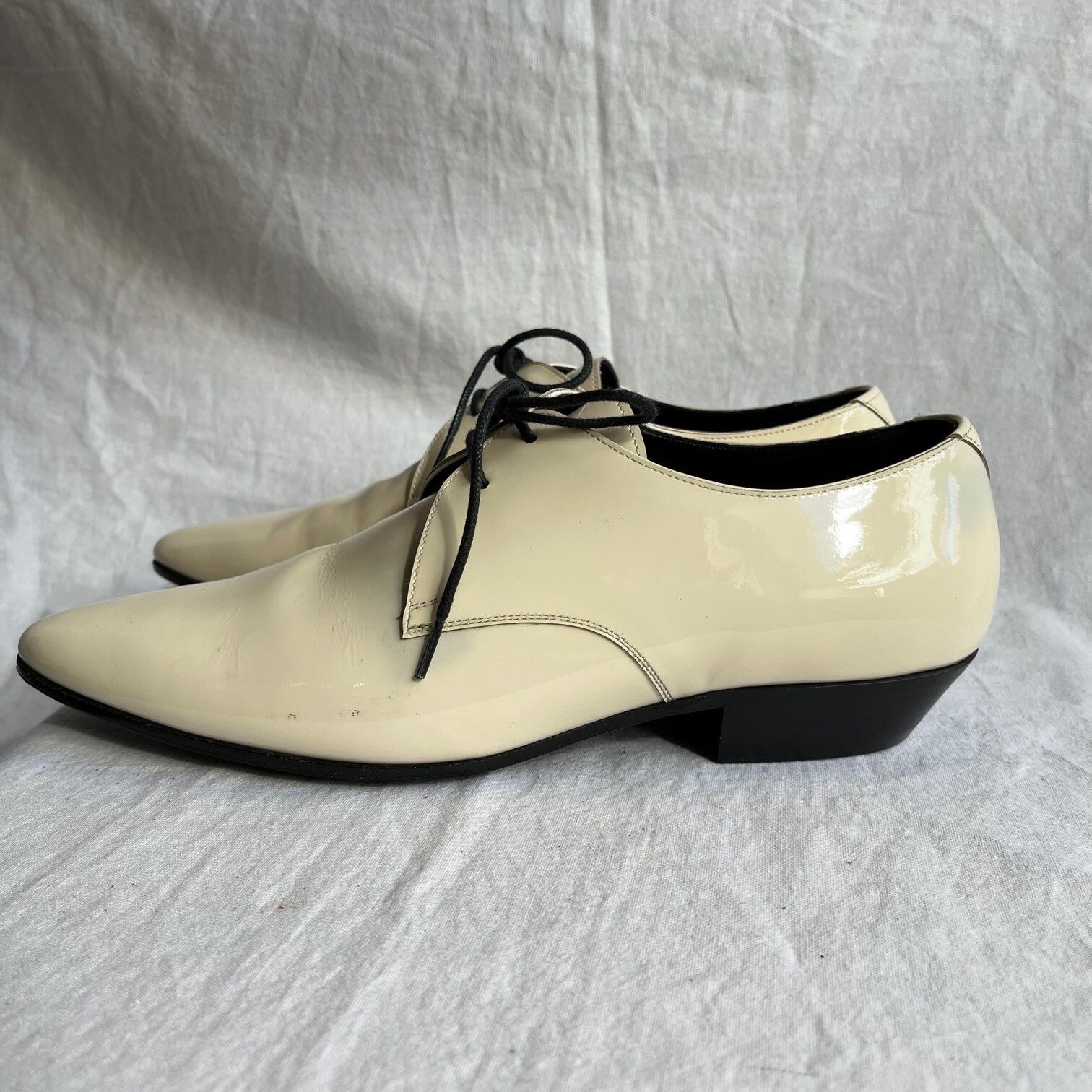 SAINT LAURENT "Ivory" Patent Leather(Enamel) Lace Up Shoes -Dead Stock!-