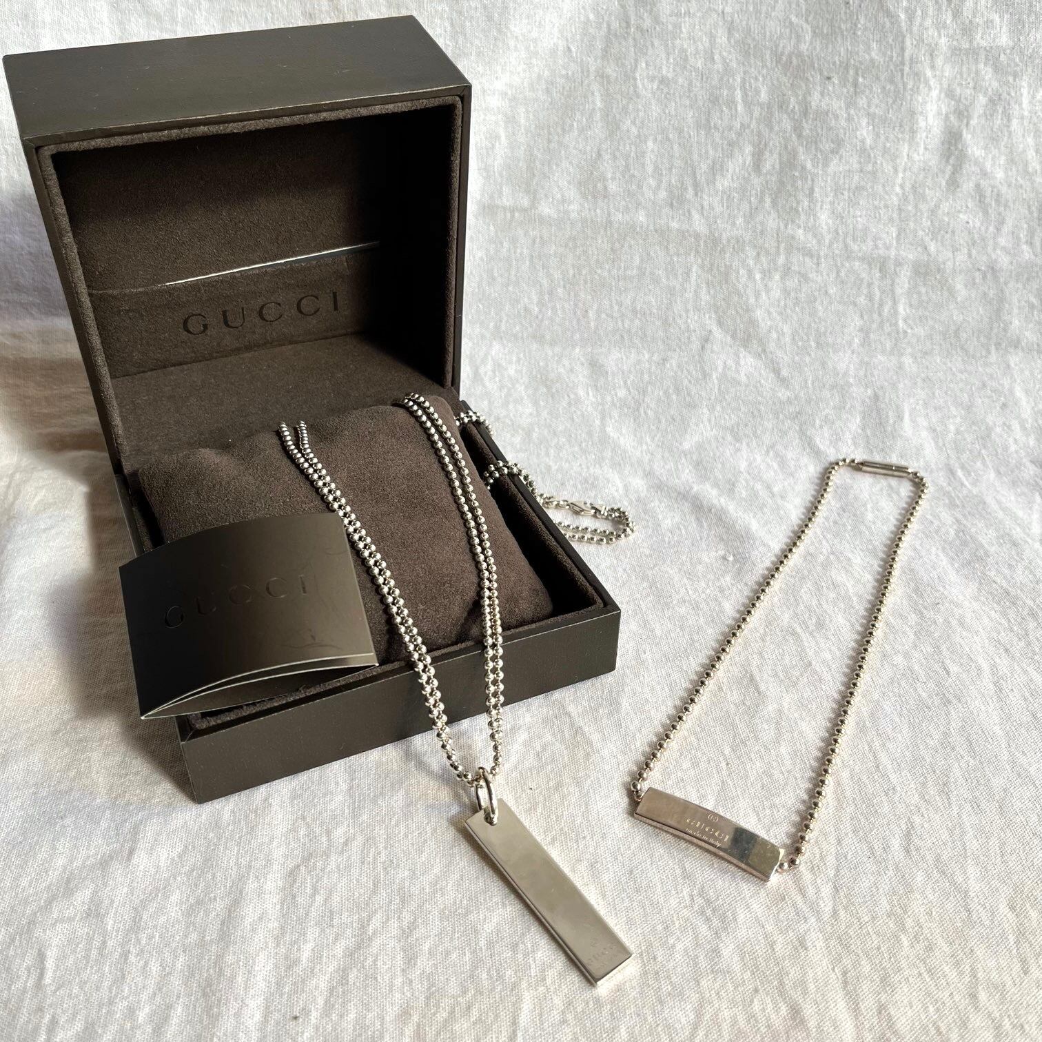ボールチェーンに横長のプレートがスタイリッシュなGUCCIのSilver製ネックレス!