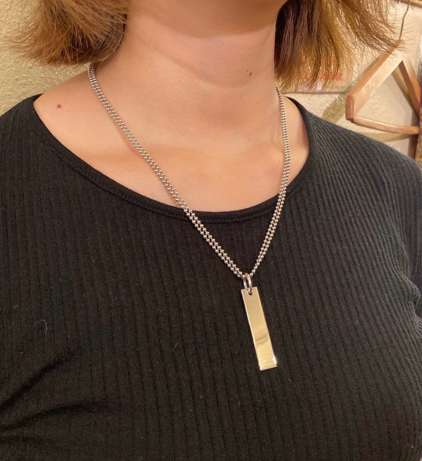 ダブルのボールチェーンに縦長のプレートがクールなGUCCIのSilver製ネックレス!