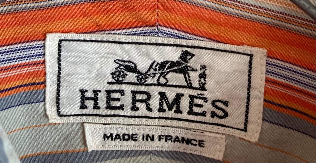 くすんだミントグリーンにオレンジのストライプが映えるHERMES Vintageシャツ!