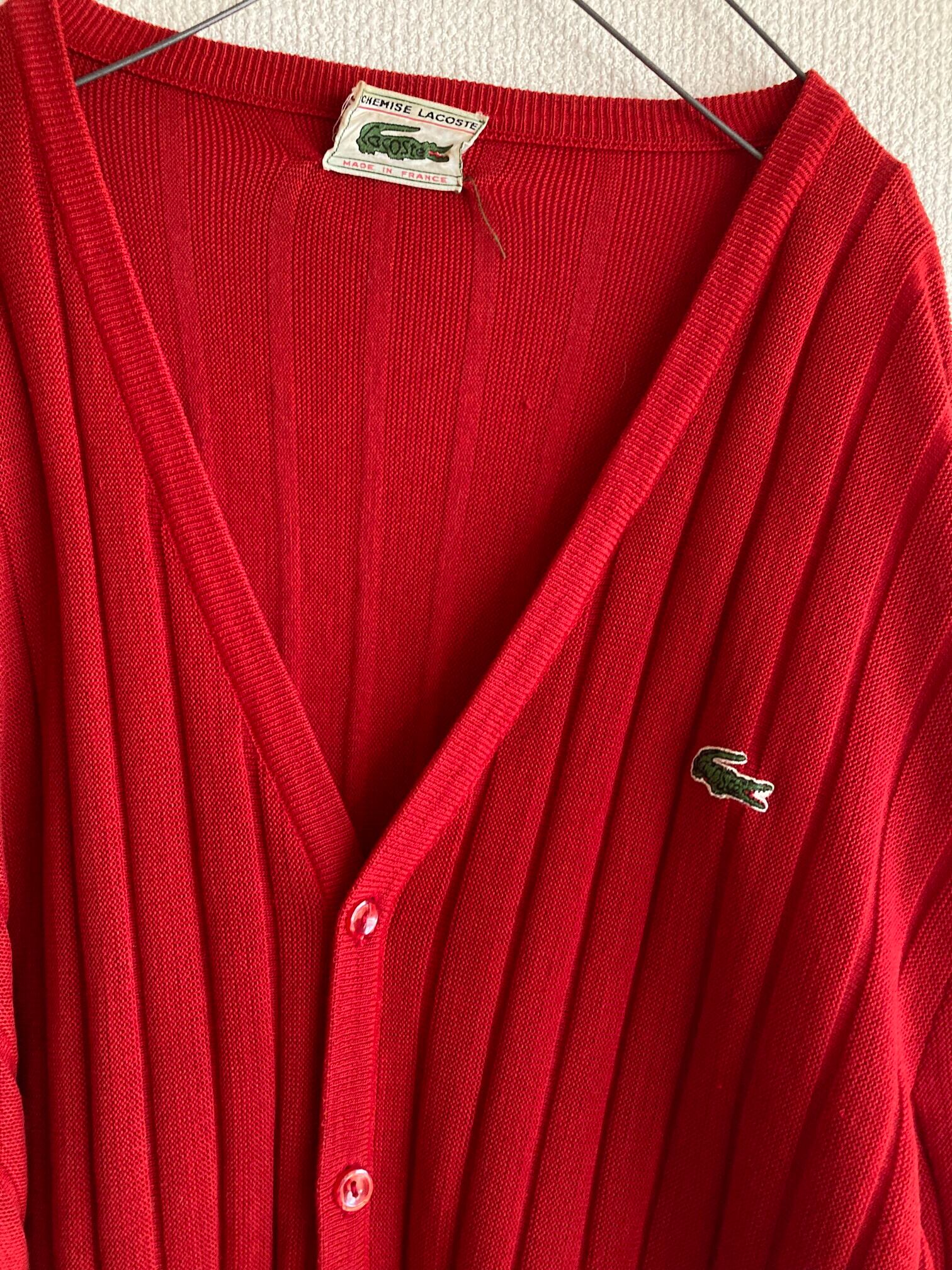 <men’s>LA COSTE French 70-80’s"Ribbed" Red Cardigan