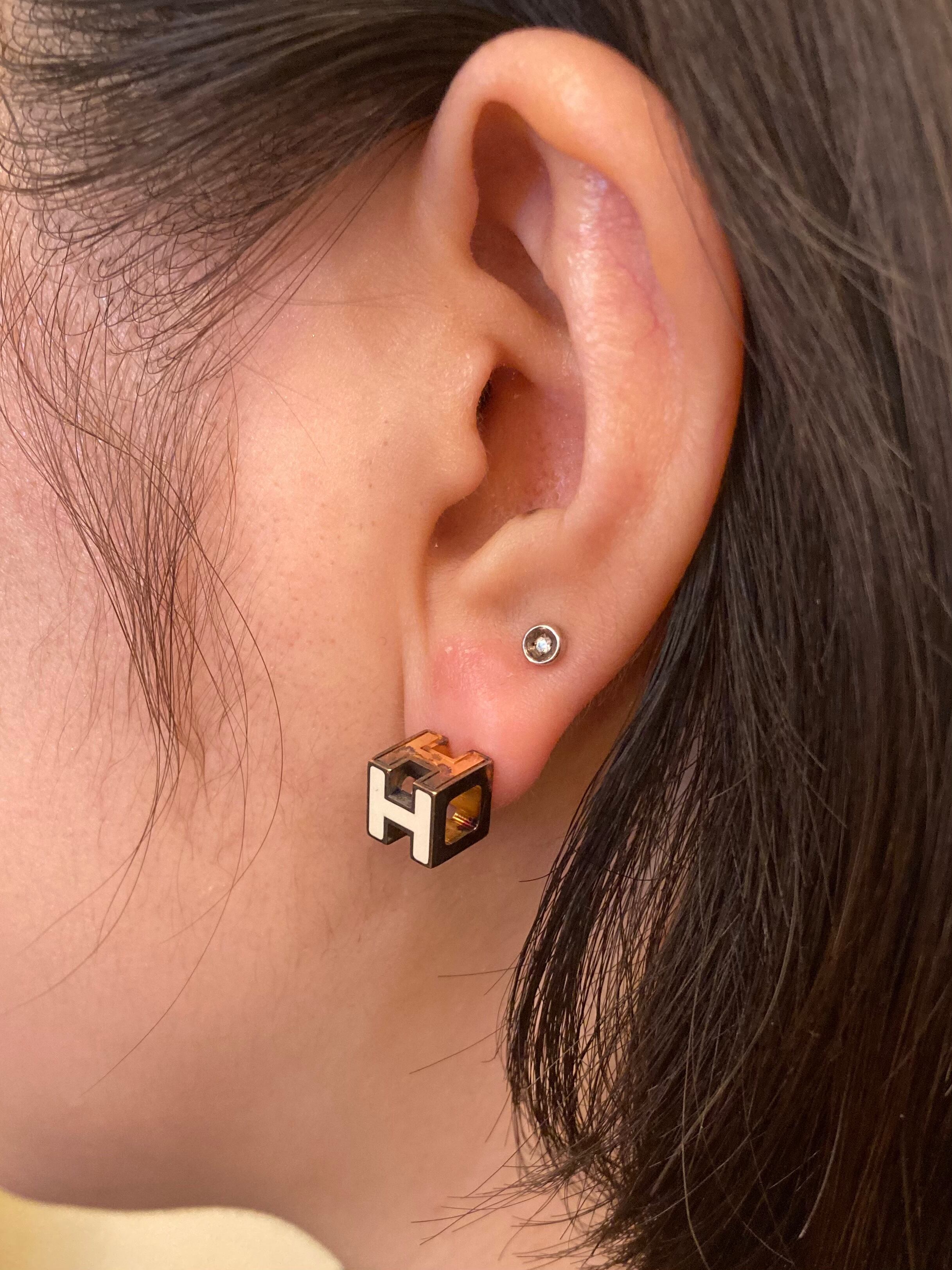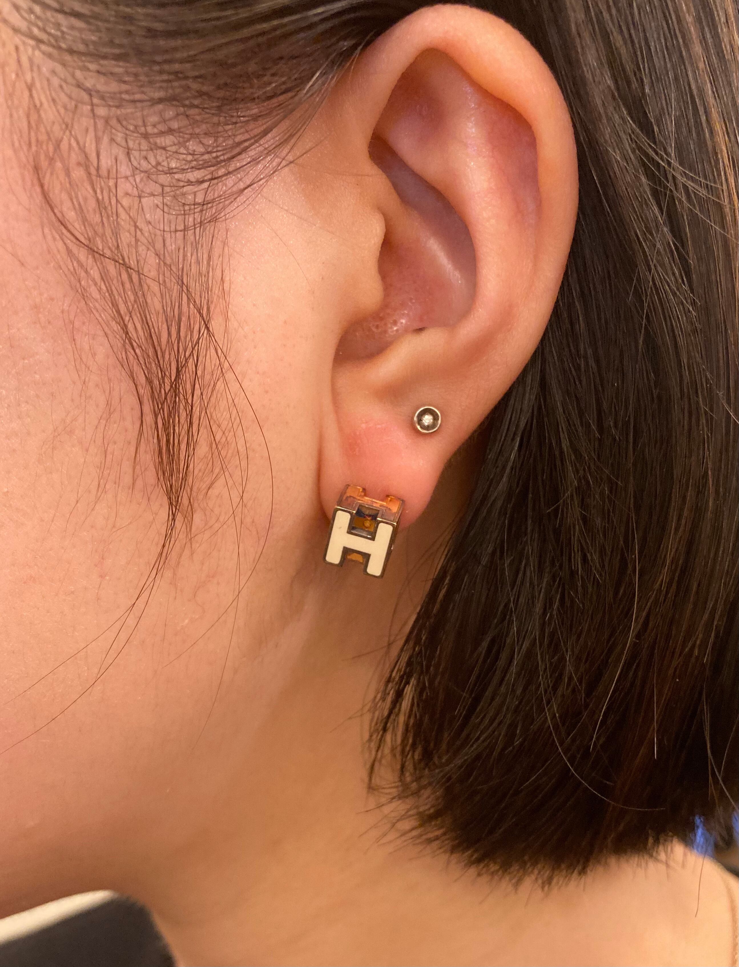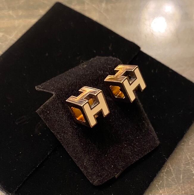 アイボリーカラーのHロゴが柔らかい印象のHERMESピアス!