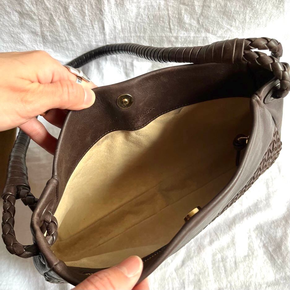 BOTTEGA "Dark Brown Leather" "Intrecciato" Hand Bag