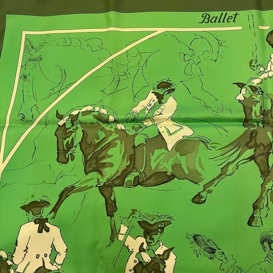 グリーンベースに線画のジョッキーたちが美しく描かれたHERMES Vintageスカーフ!
