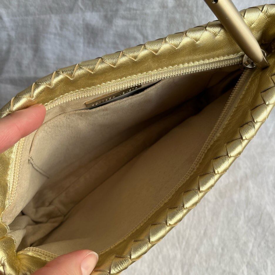 BOTTEGA "Metallic Gold" Intrecciato Clutch Bag