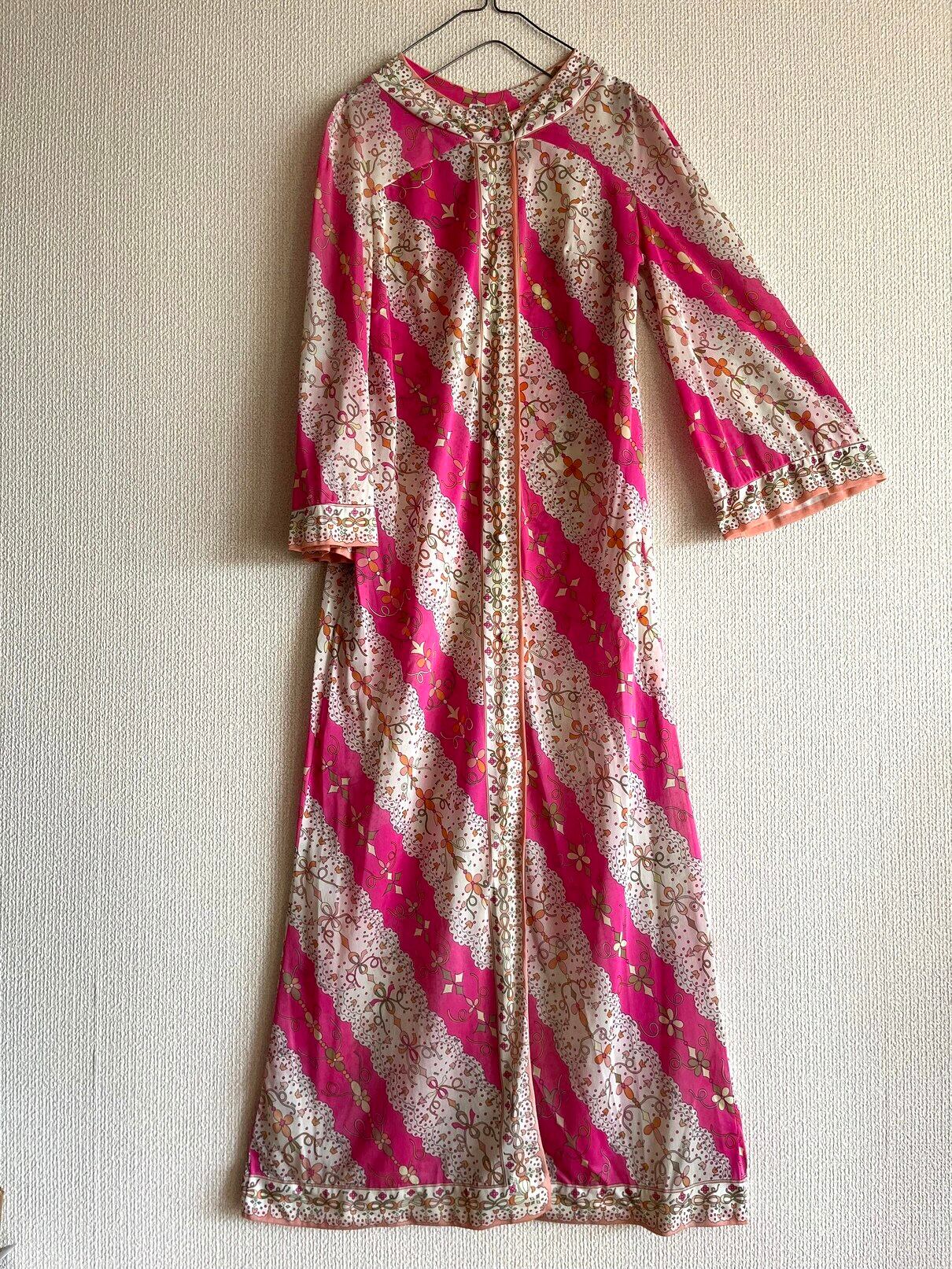 EMILIO PUCCI 1960-70's "Ribbon Pattern" Pink Dress&Inner Dress Set