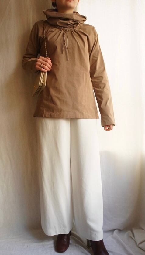 ネック部分を立てたり、クシュっと下げたり、折ったり、いろいろ楽しめます。
