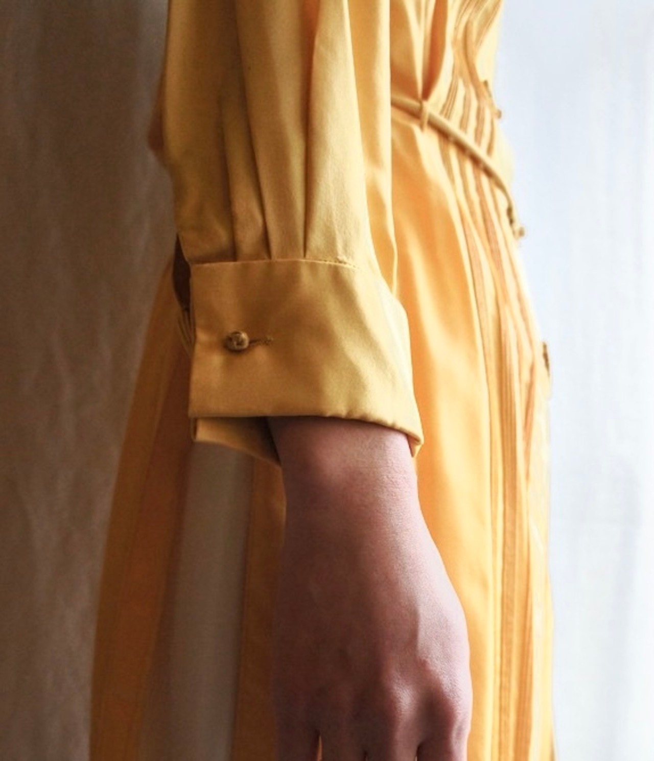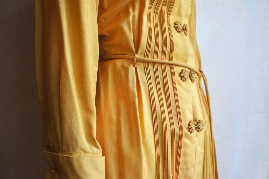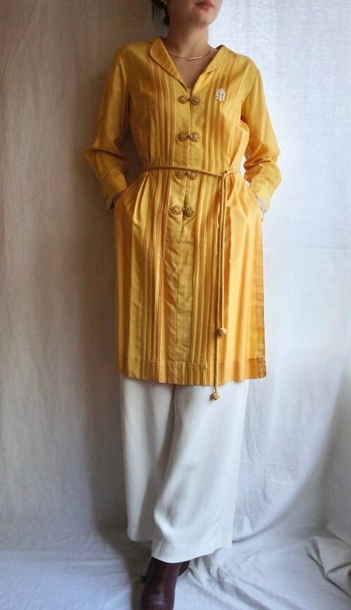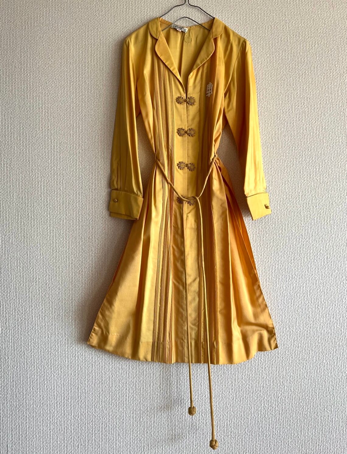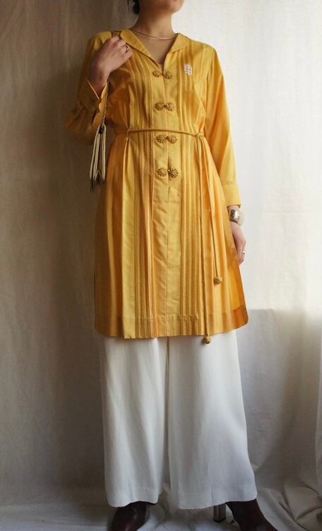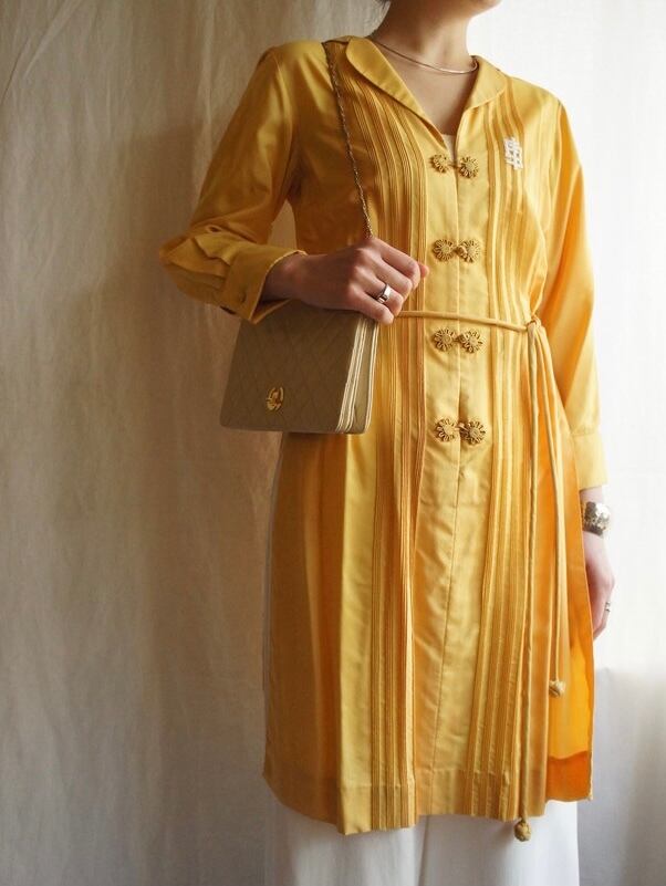 アンティーク感あふれる美しい黄色が、目を惹きます。中国の影響を感じさせる刺繍やボタンが、エキゾチックな雰囲気を演出しています。