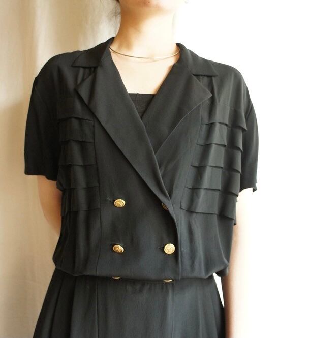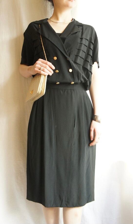 ゴールドのメタルボタンが華やかなCHANELのブラックドレス☆