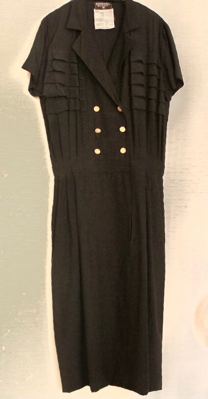 CHANEL 1980's "Gold Button" Black Silk Dress