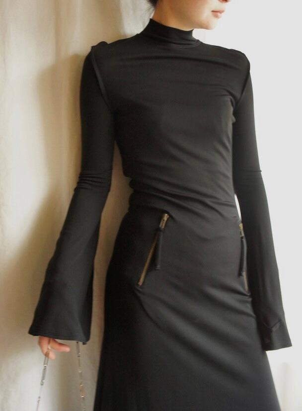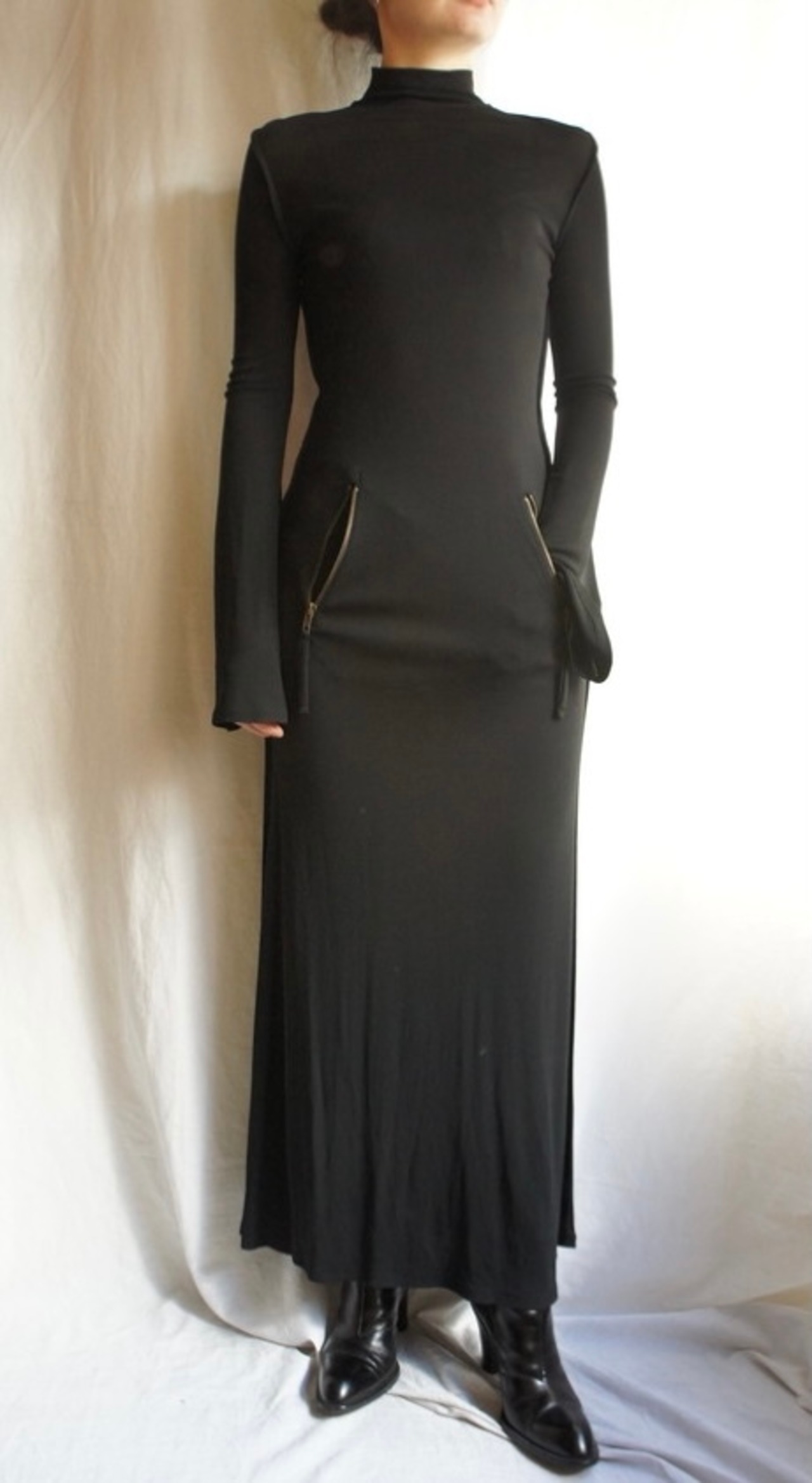 スーパーロング丈にハイネックがスタイリッシュなJEAN PAUL GAULTIERのブラックドレス!