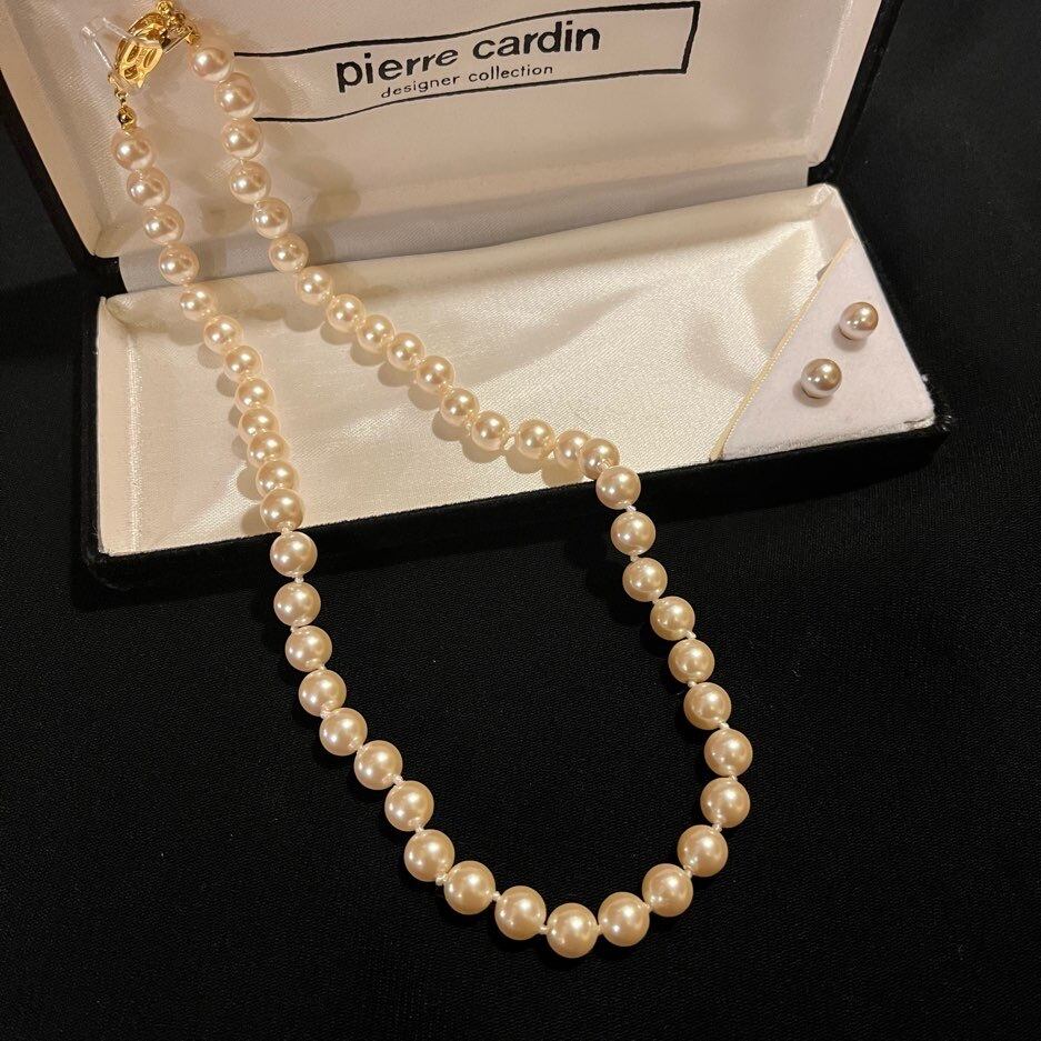 ベージュがかったパールカラーが気品のあるPIERRE CARDINのネックレス&ピアスセット!