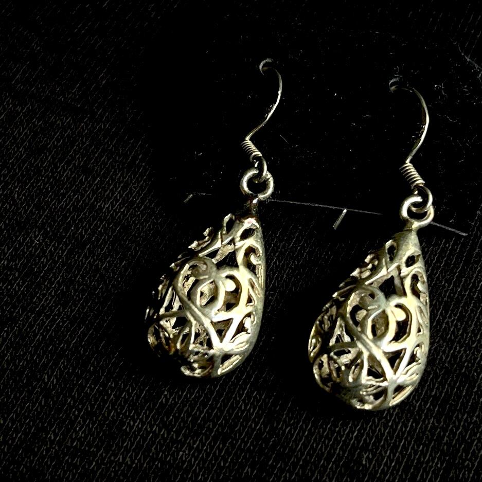 France Silver "Rain Drop Shape with Arabesque Engraving" Pierce