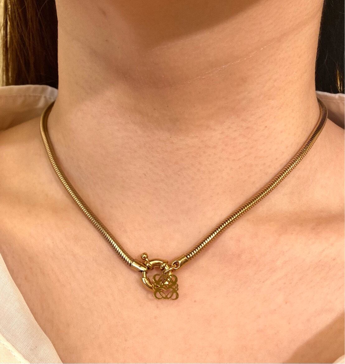 たらんとしたスネイクチェーンが上品なLOEWEのゴールドネックレス!