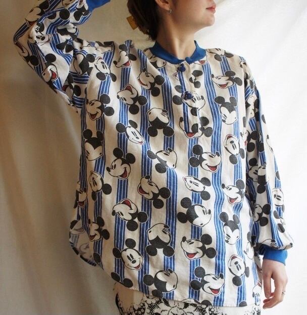 様々な表情のミッキーがユーモアのあるU.S. 1980's Vintageプルオーバー!