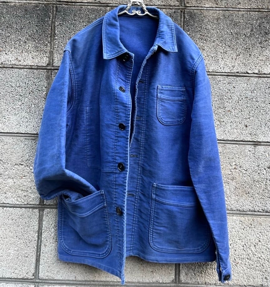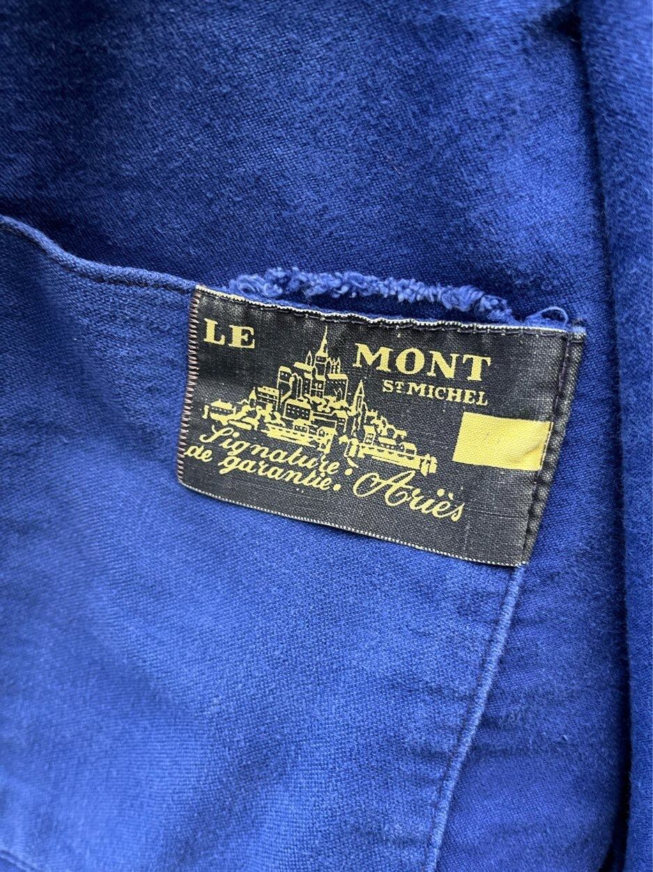 色の褪せ感がたまらないFrench Vintage ワークジャケットの中でも、特に人気の高い"Le Mont St.(Saint) Michel"社製のVintage blue モールスキン ワークジャケット1950-60’s!