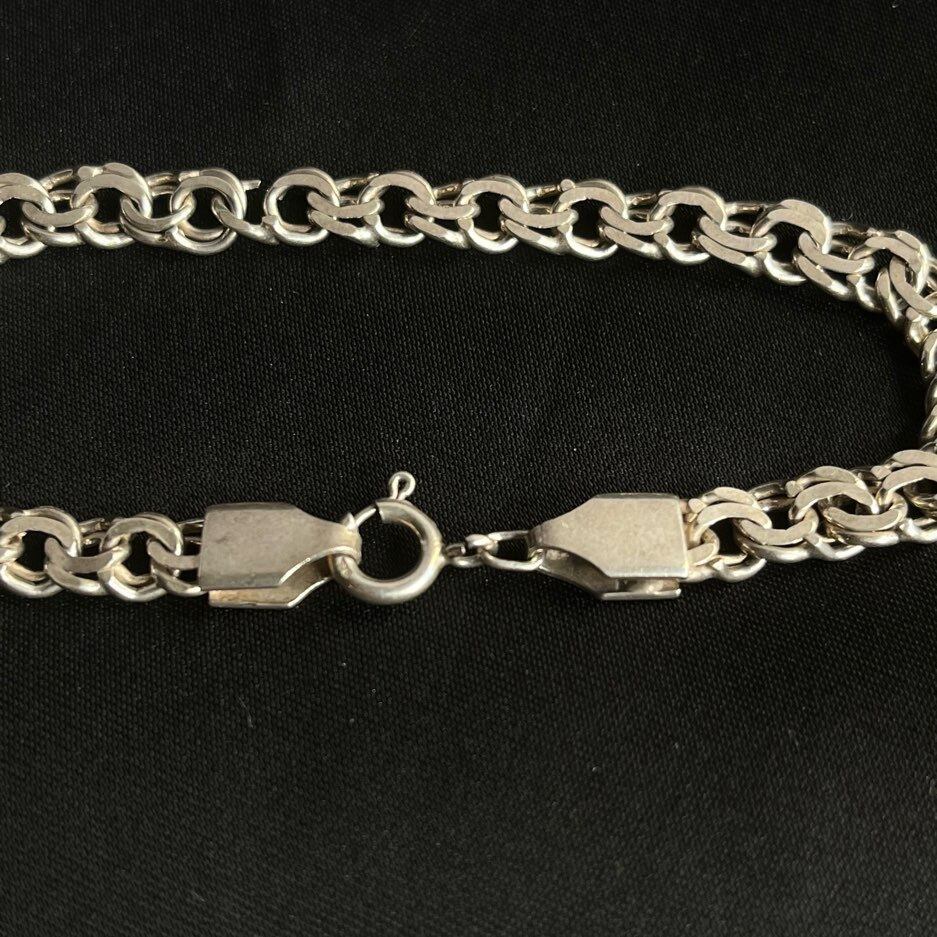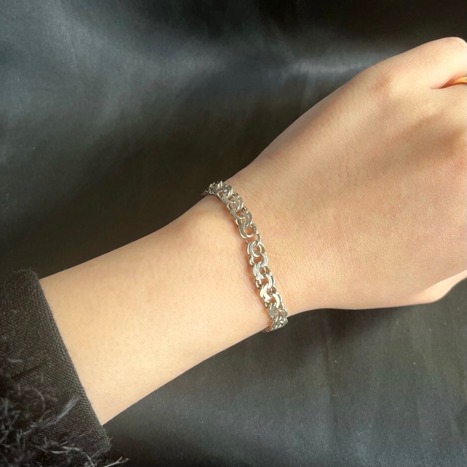 二層になったラウンドチェーンが程良くボリュームのあるVintage Silver 925ブレス!hand craft.