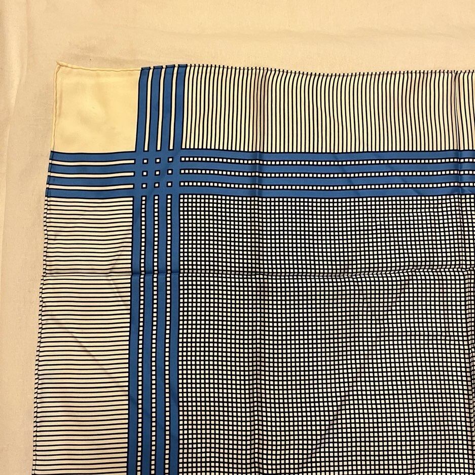 白ベースにブルーのチェックやボーダーがとってもさわやかなYSL Vintageスカーフ!