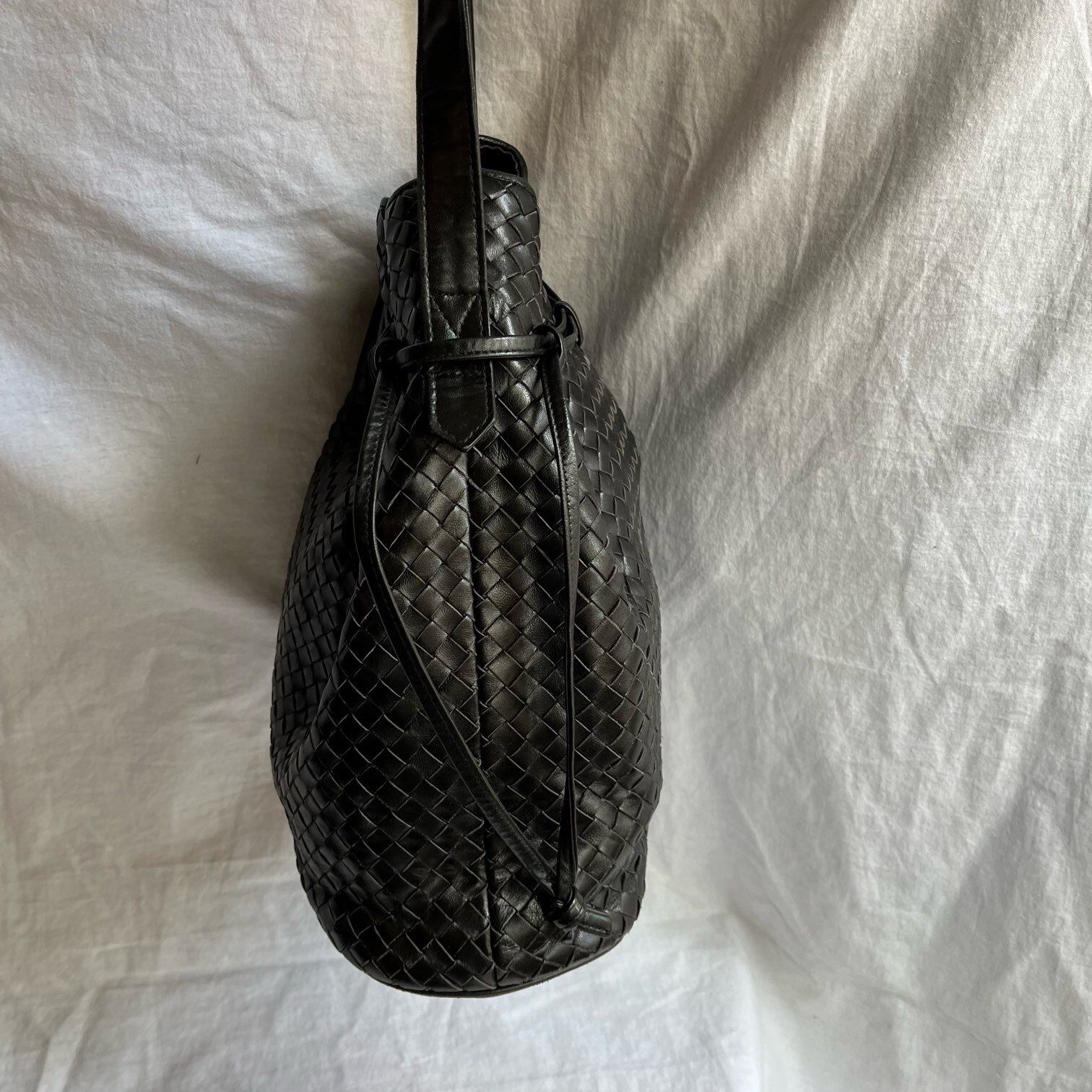 Italy "Intrecciato" Black Leather Drawstring Bag