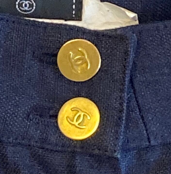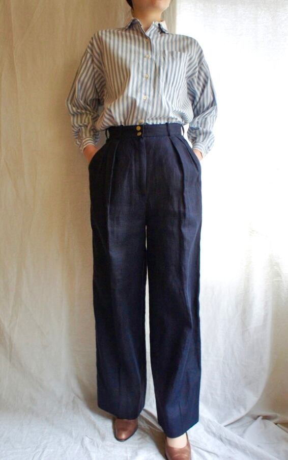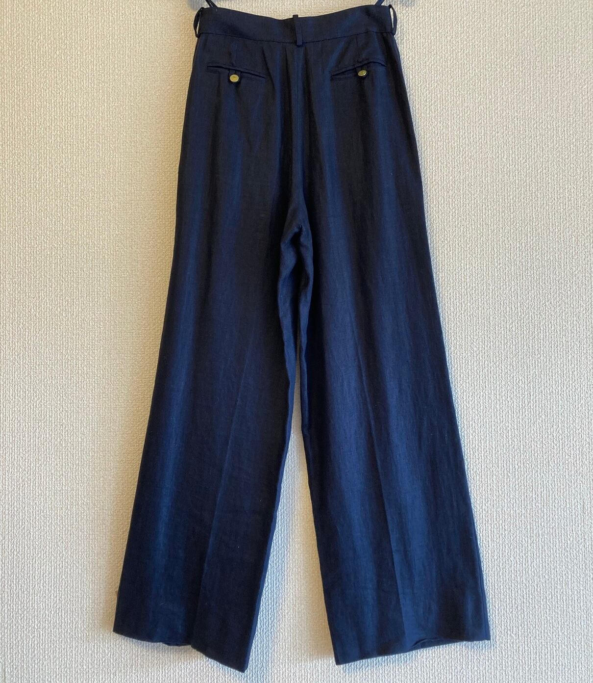 CHANEL "Navy Linen" High-Waist×Wide Pants