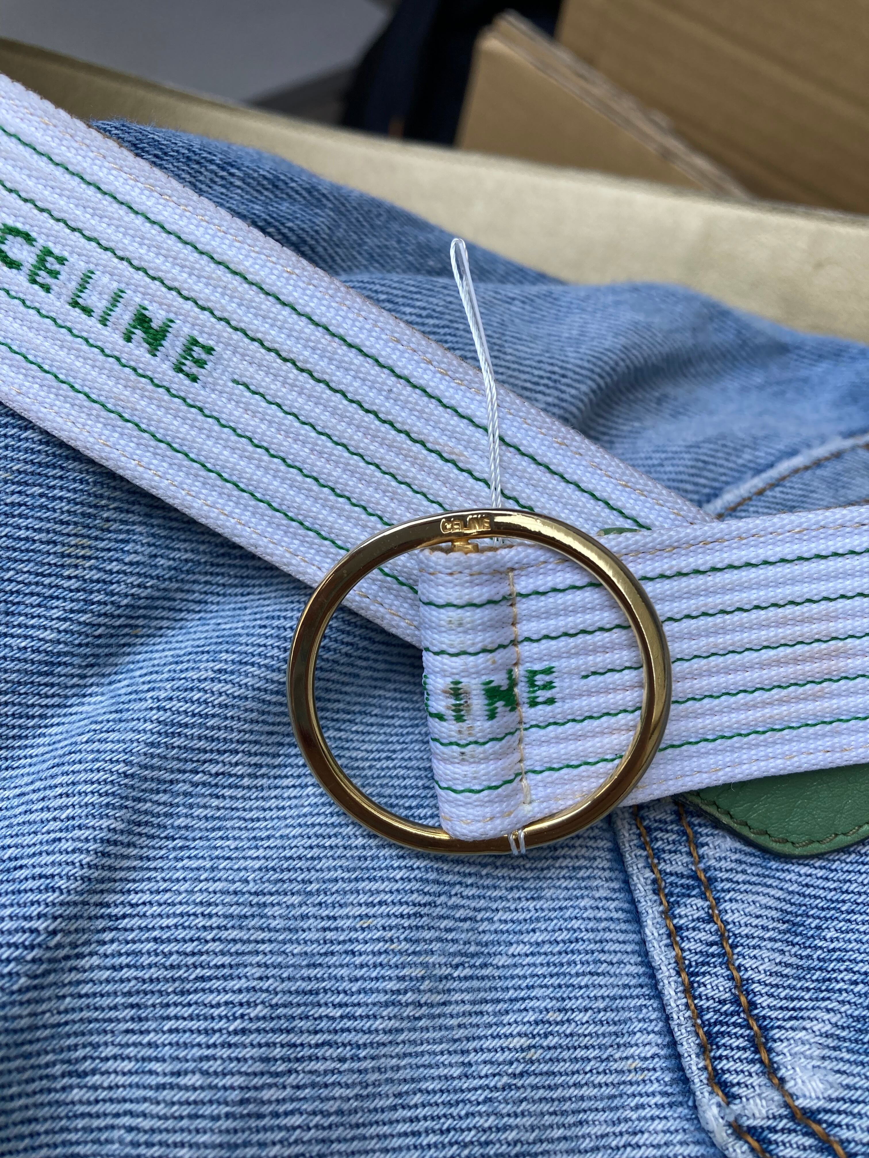 白ベースにグリーンのボーダーがスポーティーなCELINE 1980's Vintageベルト!