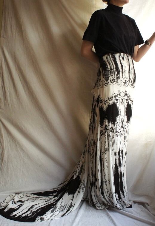 DRIES VAN NOTTEN "Black×White" "Deformative Silhouette" Long Skirt