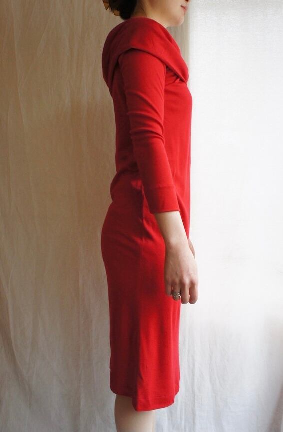 YSL 1970's "rivegauche" "Volume Neck × Long-Sleeve" Red Dress