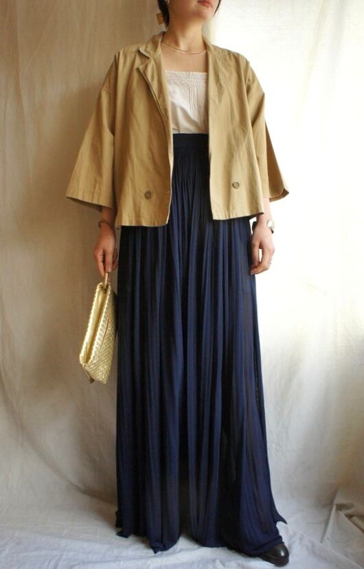 たっぷりと細かいプリーツが美しいCHANELネイビー超ワイドパンツ!