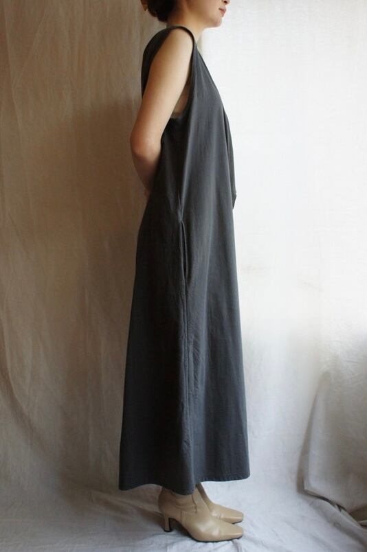 Y's "Khaki-Grey" Deformative Silhouette Sleeveless Dress