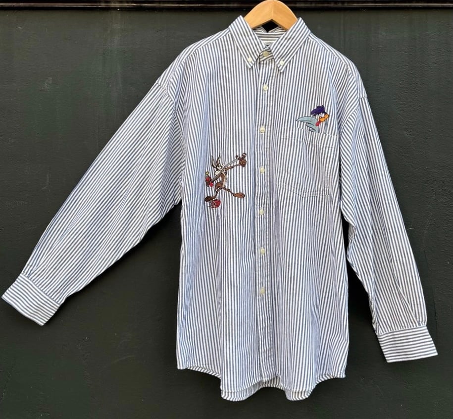 LOONY TUNESのキャラクター刺繍が遊び心感じるストライプシャツ!